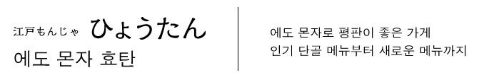 효탄 에도 몬자, 오코노미야키, 야키소바 주소 : 도쿄도 다이토구 아사쿠사 1-37-4 전화번호 : 03-3841-0589 영업시간 : 11:00~21:00(L.O. 20:00) 휴일 : 두 번째•네 번째 화요일(공휴일 및 8월•연말연시는 휴일 없이 영업))